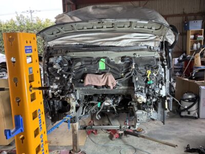 トヨタ・プリウスで、左リアドア・リアフェンダー・ステップの3パネルを巻き込み事故によって損傷した場合