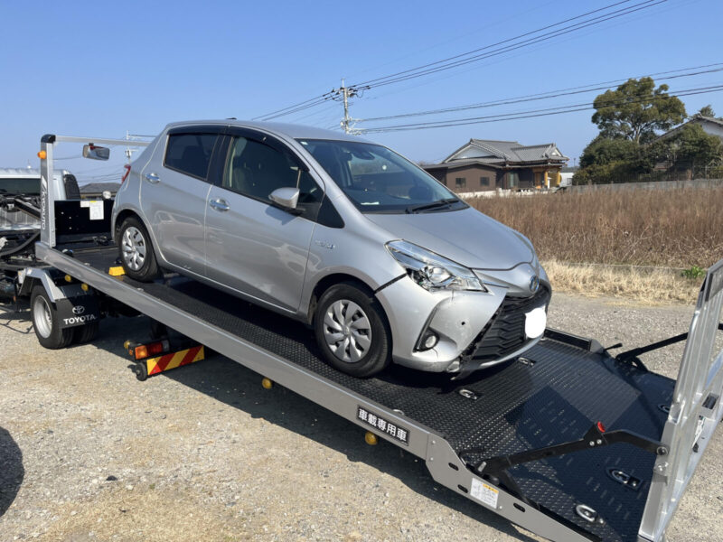 トヨタ・アクアにお乗りのオーナー様より、追突事故によるSOSをいただきました。衝撃により自走不能となった現場へ、積載車で即座に急行。お車の救出はもちろん、事故直後のレンタカー手配から保険会社との複雑な調整、そして高度なハイブリッド車の板金修理まで、すべて当店がワンストップでサポートいたしました。