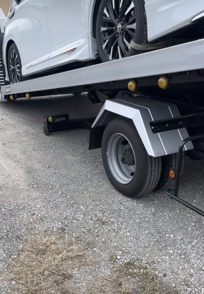 九州自動車道を走行中、アルファードのタイヤが突然バースト。追い越し車線や路肩でのトラブルは非常に危険です。今回はオーナー様よりSOSをいただき、現場まで急行。安全を確保した上で、宮崎市内の当店までレッカー搬送・完全修復を行いました。