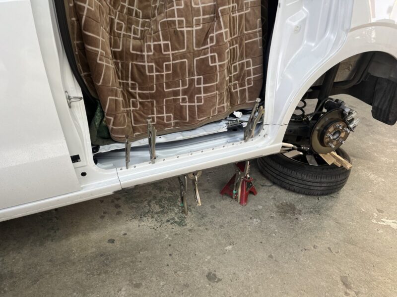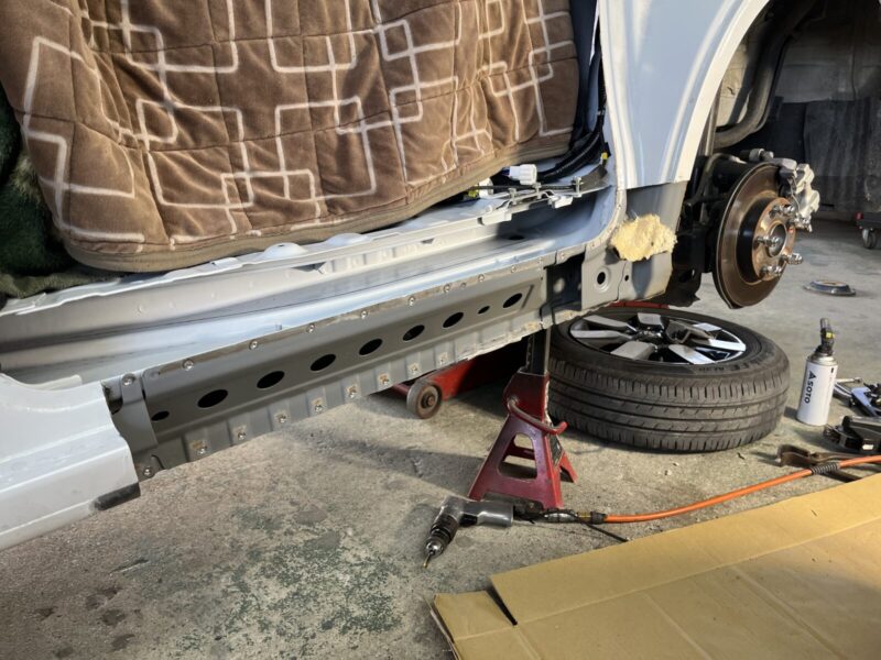 【施工内容】左ロッカーパネル(サイドシル)板金塗装・防錆処理(車両保険修理)
