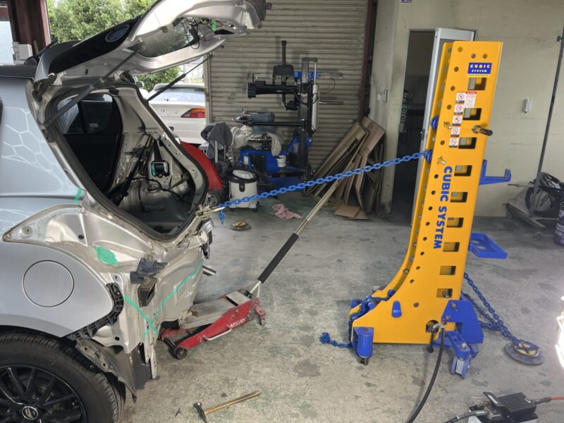スイフトのリヤ追突・保険修理|宮崎市で板金塗装ならティーズオートサービスへ!