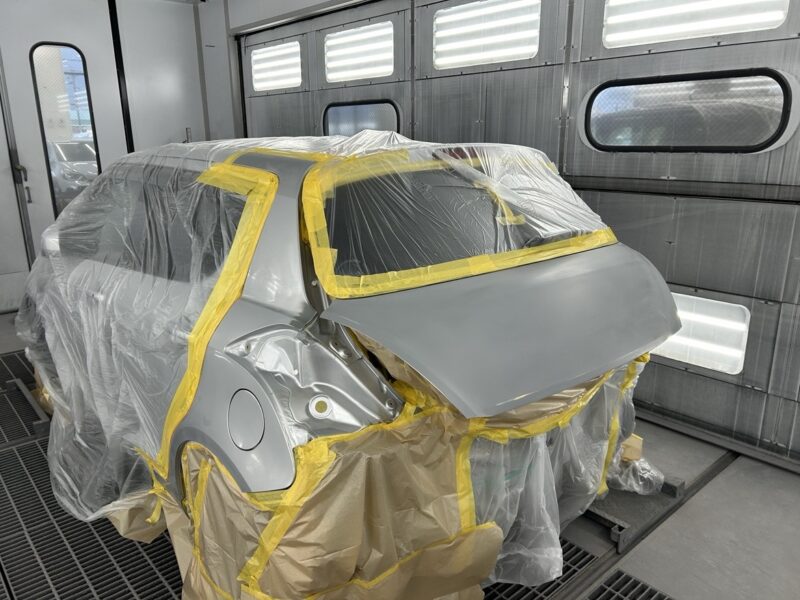 イフト特有の鮮やかなカラーや、メタリックの質感を再現するため、現車に合わせて色を調合します。塗装専用のブースでホコリを完全にシャットアウトし、熟練の職人が「どこを直したかわからない」レベルまで丁寧に塗り上げていきます。