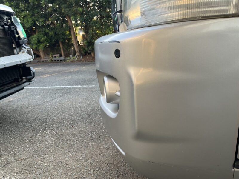 宮崎市|ハイエースのフロントバンパー修理。自費修理だからこそ「交換せず」安く綺麗に!